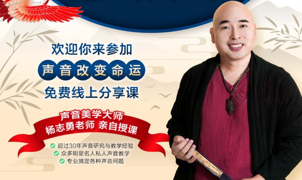 限时特价优惠 16th - 17th Dec 2025 (星期二&三) 8PM - 10PM 线上zoom 重启你的声音, 重启你的人生 限时免费报名!!! 原价 USD 299 16th - 17th Dec 2025 (星期二&三) 8PM - 10PM 线上zoom Hours Minutes Seconds 我要报名! 注:一旦超过课程限定的人数,将会立即恢复原价。 哪三种类型的人群 应该参加【声命重启】声音美容课程 01 体弱多病 身心俱疲 经常生病,恢复得很慢? 睡再久还是很累? 肩膀、背部、膝盖常年酸痛麻痹? 长期吃药却仍控制不住三高? 02 事业不顺 诸多瓶颈 身为公众人士,声音不符身份,缺乏魅力? 升职加薪总是与你无缘? 生意每次都很难成交? 即使努力优秀,领导还是看不到你? 03 家庭关系紧张 沟通无效 与家人常有冲突,争吵不休? 和伴侣沟通困难,说一句吵一句? 明明想表达A,出口却总是B? 感受不到爱,也给不出爱? 虽然声音是与生俱来的, 但它绝不是一成不变的。 杨志勇老师说: “声音可以改变命运。” 只需三秒,杨老师就能从 你的声音中听出你的 性格、事业、婚姻和财富走向。 只要学会正确发声, 打开身体内在的五个“喇叭”, 就能唤醒气血,焕发光彩, 练就磁性魅力之声。 掌握身体与声音的内在力量, 你将在人群中发光, 在职场上更有影响力, 在家庭中重拾温暖与连接, 彻底翻转你的人生轨迹。 限时免费报名!!! 原价 USD 299 16th - 17th Dec 2025 (星期二&三) 8PM - 10PM 线上zoom Hours Minutes Seconds 我要报名! 注:一旦超过课程限定的人数,将会立即恢复原价。 2天线上课程, 你将学到什么? 第一天 唤醒磁性之声 掌握正确发声方法, 练出不会疲惫的嗓音, 激活血脉, 让声音更有能量与魅力。 第二天 疗愈声音的问题 针对性解决豆沙喉、 娃娃音、咬字不清、 结巴等困扰, 什么是声音性格五行, 如何去调整声音,逆袭人生! 免负责声明: 慧启教育有权更改课程内容 你是否也面对 以下问题 讲话很容易累,很容易嘶哑? 唱歌高音上不去,低音下不来? 讲话缺乏感染力? 常常上气不接下气? 在社交场合很难与人建立连接? 有慢性疾病,每天需要吃很多药? 限时免费报名!!! 原价 USD 299 Hours Minutes Seconds 注:一旦超过课程限定的人数,将会立即恢复原价。 学生见证 Testimonials 上了王者课程后, 气血充盈,身体轻盈, 连爬三楼都不再是负担。 情绪低落时学习呼吸法, 竟然改善了多年的胃病与头晕, 重获轻松自在。 长年脚痛困扰, 经过训练后脚痛与 失眠都明显改善, 走路轻快,夜晚安眠。 曾经脚痛到无法久站, 夜里常被痛醒, 如今通过魅力声音训练, 不仅脚与喉咙舒畅, 还摆脱了护膝带的依赖。 肩胛骨上的硬块多年无解, 经杨老师妙手调理后, 不仅消失,连颈项、 头部也得到了全方位锻炼, 肌肤光滑,收获巨大。 疫情后身体虚弱, 常年奔波中医 与按摩也无济于事。 参加魅力声音课程后, 不仅自己身体改善, 连先生的鼾声也奇迹般消失。 曾因不自信 而两年间暴胖30公斤, 导致膝盖与腰部严重疼痛。 幸得杨老师调理打通, 全身焕新,再无疼痛困扰。 本来开口困难, 嘴巴和脖子僵硬。 教练耐心指导细节, 训练后竟连深度伤口都在 三天课程中意外痊愈。 参加《声音改变命运》 三天课程,身体排出大量浊气, 整个人轻盈通透, 感恩杨老师的引领。 学员见证: 从UIUC到普林斯顿, 梦想照进现实 “我被普林斯顿计算机硕士项目录取了!” 张家口同学在微信中兴奋地向王琨老师报喜。他在国内某重点中学国际部完成高中学习,大学本科先被UIUC(伊利诺伊大学香槟分校)录取,后转入计算机专业。在保持优秀成绩的同时,积极联系清华教授和本校导师参与科研,还辅修了统计学专业。 这一切的背后,是他在王琨老师课程中打下的坚实基础。 “好嘞,等师父的奖学金哈哈哈!” 这不仅是一份喜讯,更是一段成长的见证——从课程中的思维训练、项目指导到留学规划,张同学一路走来,始终没有放弃对卓越的追求。 最终,他收到了来自普林斯顿大学的硕士录取通知书。 学员见证: 斩获悉尼大学录取, 踏实前行终见曙光 “师傅,我悉尼大学录取通知书到了!” 在拿到录取通知书的那一刻,这位来自王琨老师课程的567号学员,第一时间分享了这份喜悦。他不仅提交了悉尼大学的offer文件,还晒出了与同学和老师的讨论截图。 “心已落地,太开心了。” 从不确定到安心落地,从焦虑等待到喜悦释然,录取通知书不仅是一张纸,更是这位学员努力和坚持的回报。他在王琨老师的指导下,从择校、申请、到材料准备,每一步都稳扎稳打,终于实现梦想。 学员见证: 从学习到创业, 梦想从这里启航 “今天我人生第一家公司正式创立了。” 567号学员再次向王琨老师报喜,这一次不是录取通知书,而是创业成功。他激动地晒出营业执照,并表示未来还将为课程体系中的学员和助教提供服装定制服务。 “以后咱们慧宇的学员服装和助教服装我这边也可以定制。” 从学业提升到企业创办,他的变化见证了课程不仅教知识,更激发行动力与实战能力。在老师的鼓励与指引下,他用自己的方式回馈成长,也踏上了属于自己的创业之路。 常见问题 FAQ 请问这个课程适合几岁的人参加? 答:课程开放给所有有心通过改变声音,改变命运的人,年龄不限。 我已经是成年人,我还能改变自己的声音吗? 答:肯定可以!杨老师也是在成年以后才改变自己声音,更自创出一套非常适合成年人的声音功法。欢迎报名参加。 我讲话很小声,也很内向,上台会怯场,请问适合